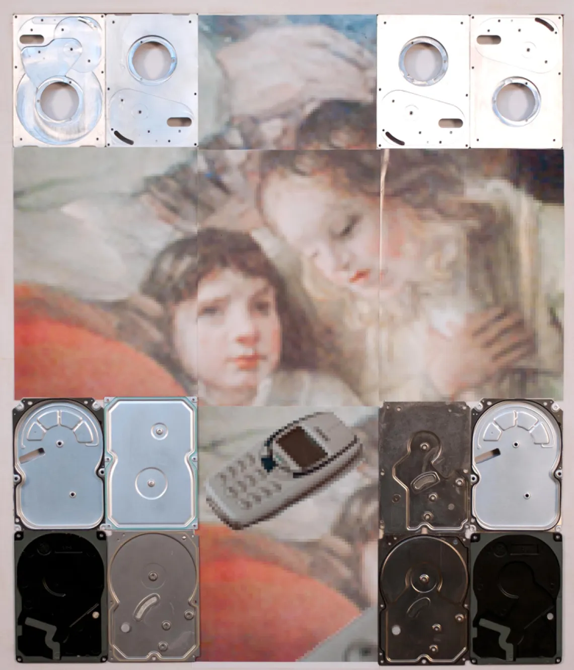 Mixed Media aus Festplattengehäusen und bearbeiteter Fototografie